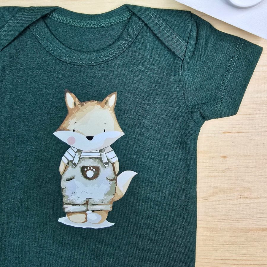 Body Curto para Bebê Verde Musgo Raposa
