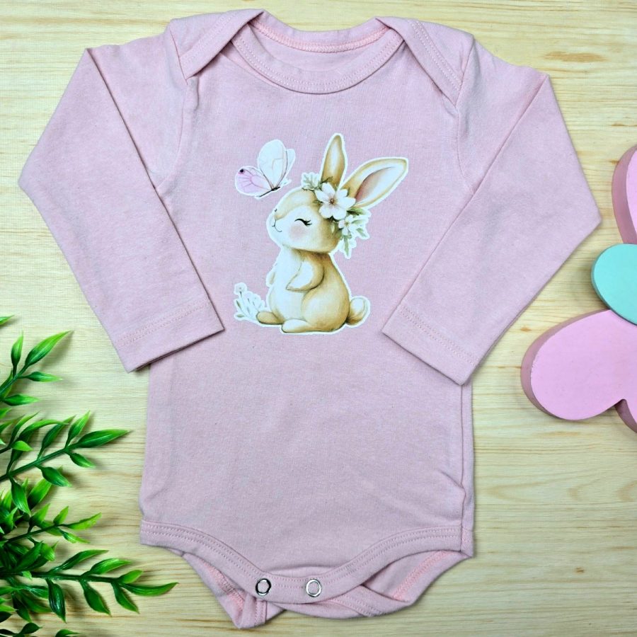 Body Longo Bebê Menina Rosa- Coelhinha