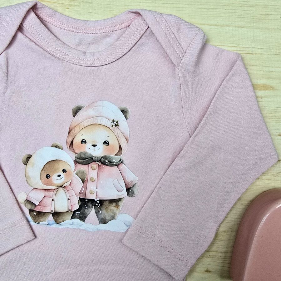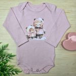 Body Longo Menina Rosa Ursinhas Neve