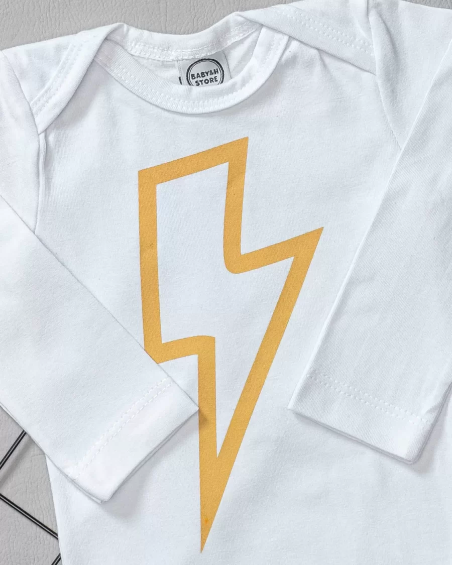 Nosso Body para Bebê Manga Longa Branco Raio é produzido com Cotton Premium Light, com elastano na sua composição resulta em uma peça super macia e confortável, é ideal para todas as ocasiões, uma peça chave no guarda roupa do seu baby. Gola em envelope que facilita vestir na cabeça do bebê e botão de Pressão na entre perna. Uma peça pratica para o dia a dia da mamãe. Além dessa cor/estampa temos vários outras em nosso site.