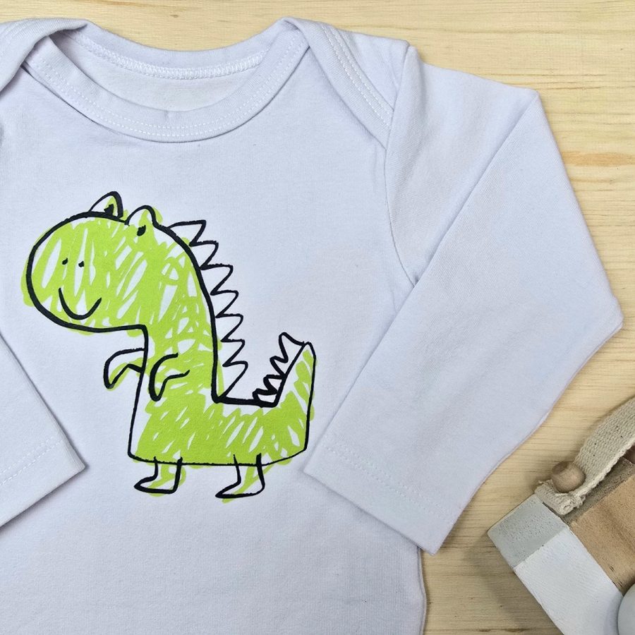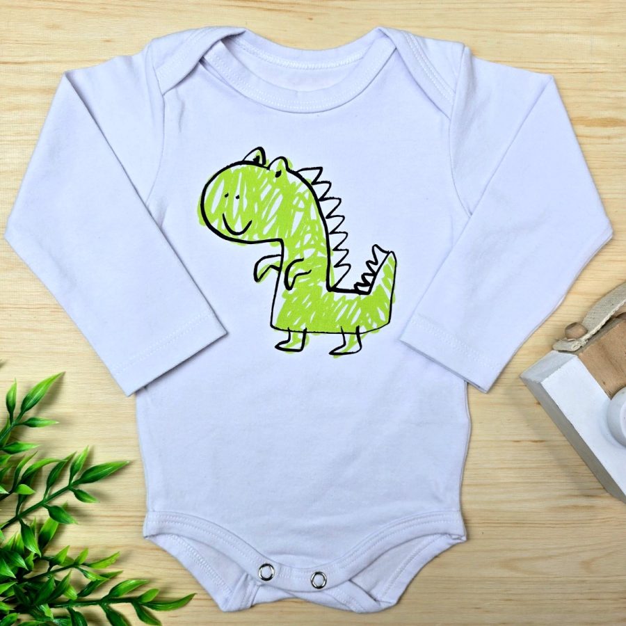 Body para Bebê Menino Manga Longa -Dino Verde