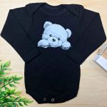 Body Para Bebê Manga Longa Preto-Ursinho