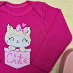 Body Para Bebê Menina Manga Longa Rosa-Gatinha Cute