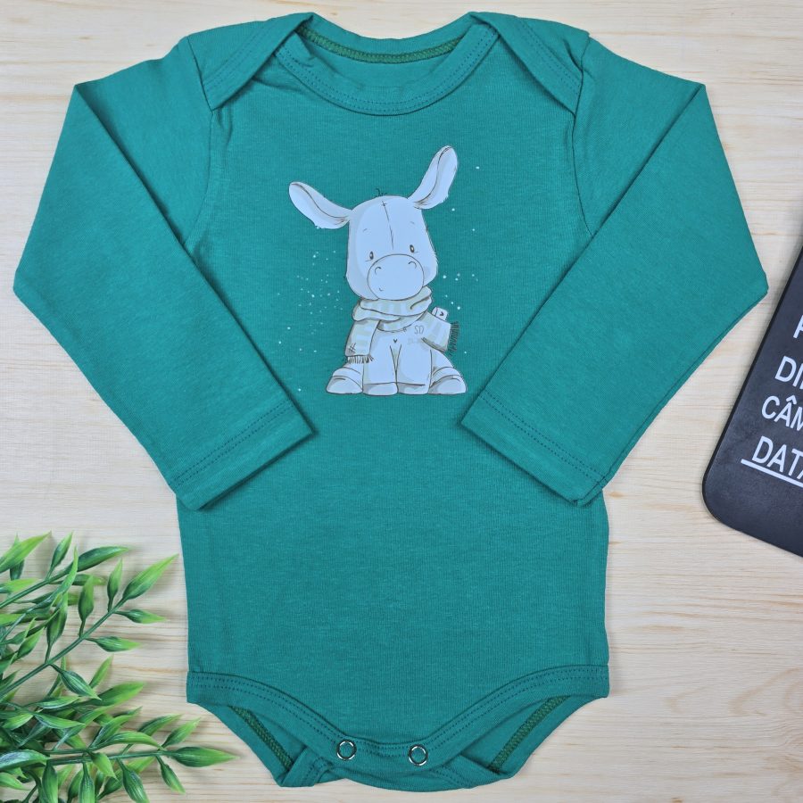 Body Para Bebê Manga Longa Verde-Elefante
