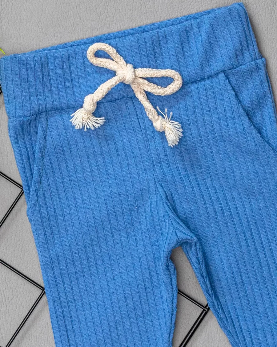 Calça para Bebê Canelada C/ Bolso Azul Rivera