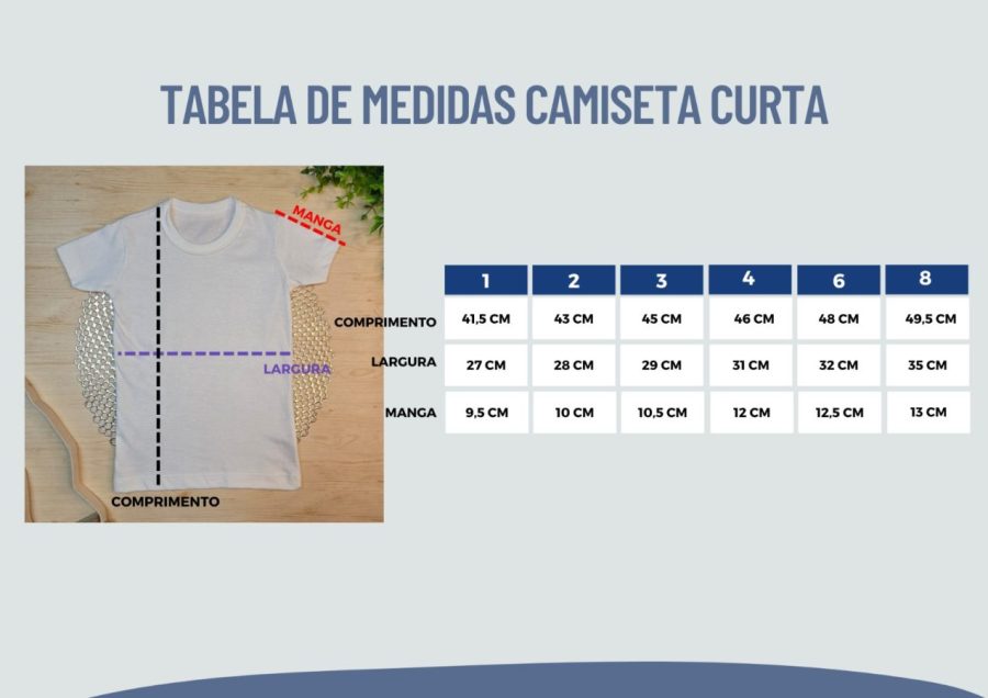 💡 Dica: O algodão pode encolher levemente após a lavagem. Em caso de dúvida, opte por um tamanho maior.