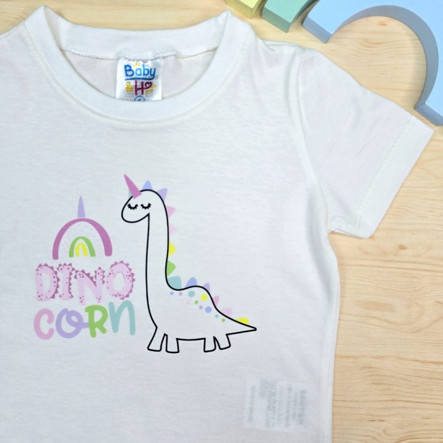 Camiseta Infantil de Menina Off Dino Girl feita em 100% Algodão da Baby&H – Conforto e Estilo para o Dia a Dia 🌈