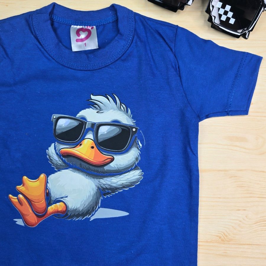 Camiseta Infantil de Menino Azul Patinho feita em 100% Algodão da Baby&H – Conforto e Estilo para o Dia a Dia 🌈