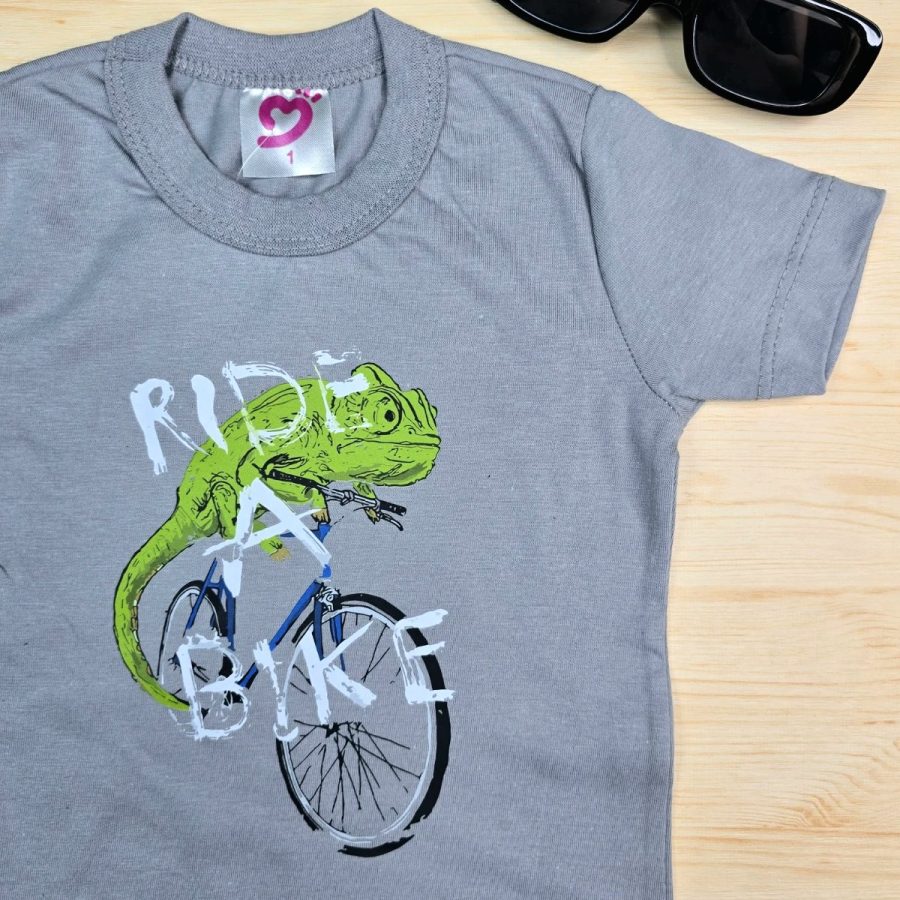 Camiseta Infantil de Menino Cinza Camaleão feita em 100% Algodão da Baby&H – Conforto e Estilo para o Dia a Dia 🌈