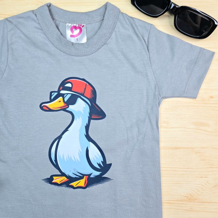 Camiseta Infantil de Menino Cinza Pato feita em 100% Algodão da Baby&H – Conforto e Estilo para o Dia a Dia 🌈