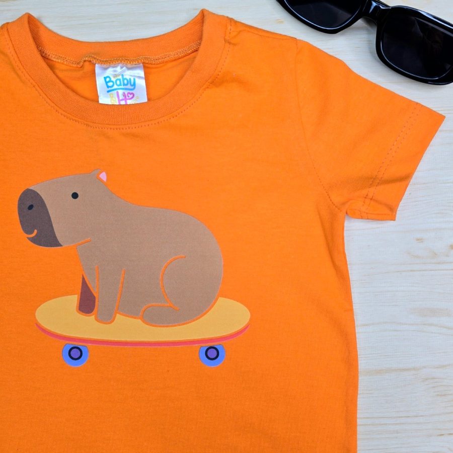 Camiseta Infantil  de Menino Laranja Capivara feita em 100% Algodão da Baby&H – Conforto e Estilo para o Dia a Dia 🌈