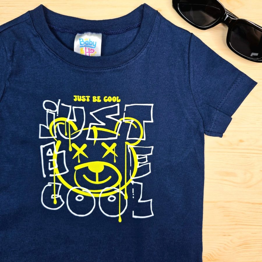 Camiseta Infantil de Menino Marinho Just Be Cool feita em 100% Algodão da Baby&H – Conforto e Estilo para o Dia a Dia 🌈