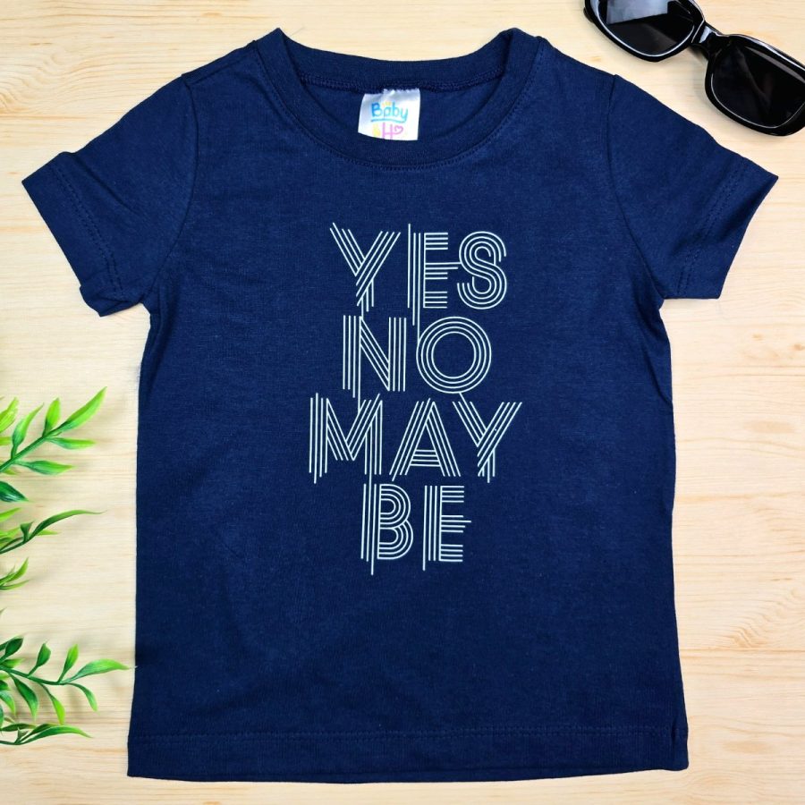 Camiseta Infantil de Menino Marinho YES feita em 100% Algodão da Baby&H – Conforto e Estilo para o Dia a Dia 🌈