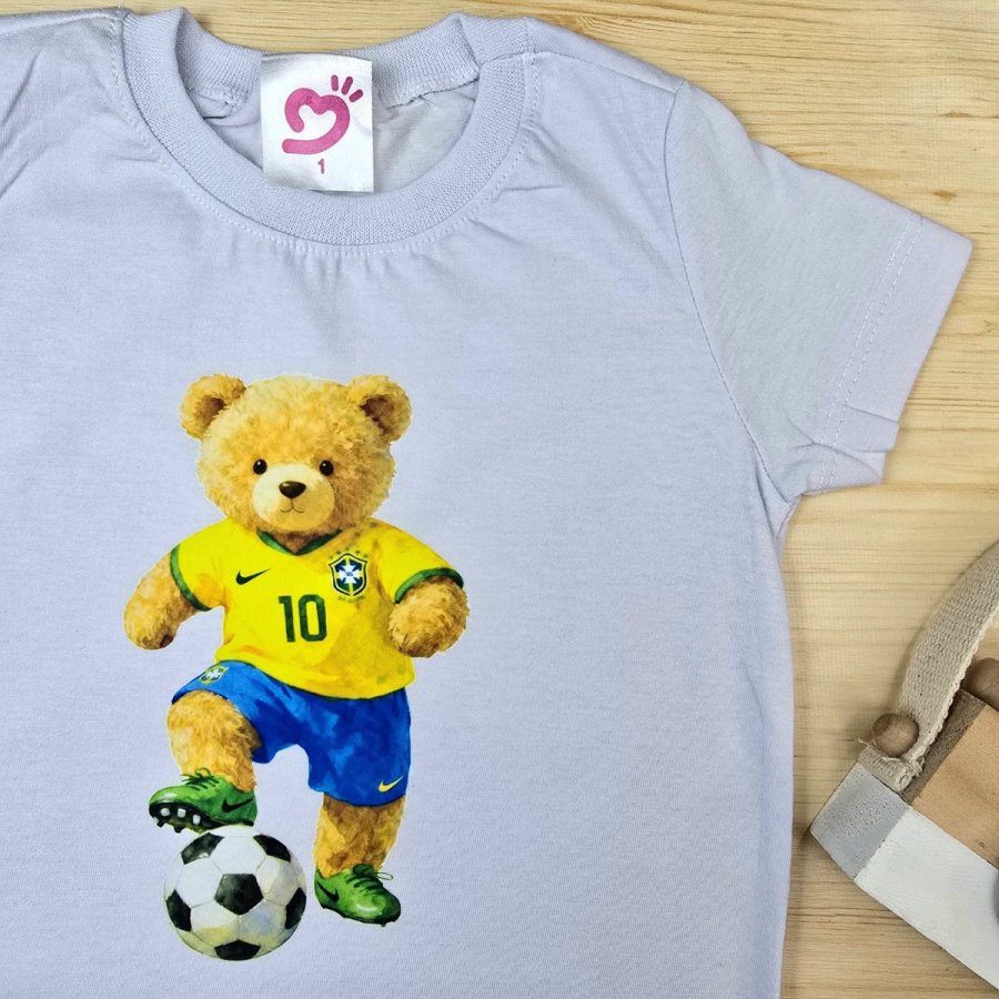 Camiseta Infantil de Menino Ursinho feita em 100% Algodão da Baby&H – Conforto e Estilo para o Dia a Dia 🌈