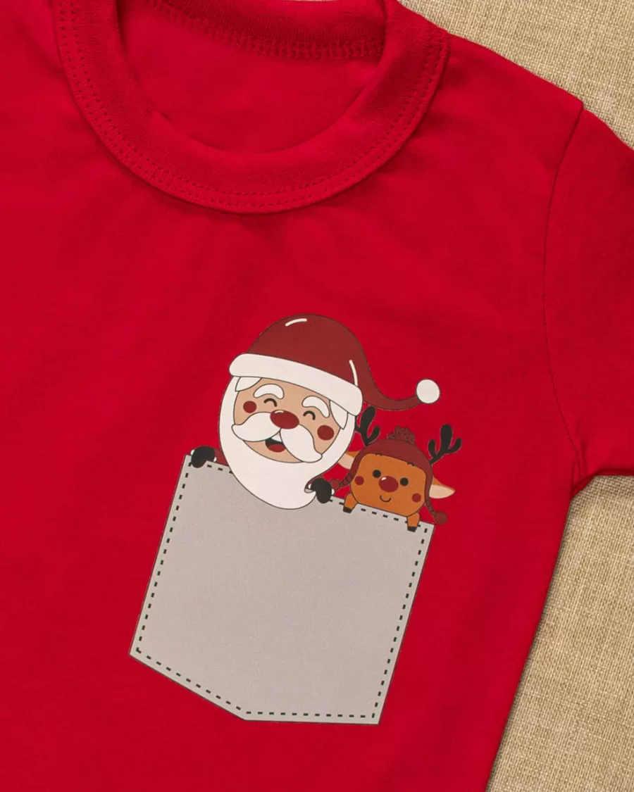 Nossa Camiseta Curta Infantil Tradicional Vermelha Bolso Papai Noel é produzida em Malha de camiseta 100% algodão. Uma peça macia e confortável. Ideal para todas as ocasiões, uma peça chave no guarda roupa. Praticidade para o dia a dia da mamãe. Não contém elastano na sua composição. Além dessa cor temos vários outras em nosso site.