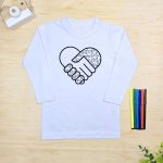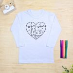 Nossa Camiseta Infantil manga longa Mágica – Quebra Cabeça Coração é produzida em Malha de camiseta 100% algodão. Acompanha um Kit de 6 Canetinhas Hidrográficas. As Nossas Camisetas Mágicas são sucesso com a criançada elas podem ser pintadas com as Canetinhas que Acompanham o Kit. Após a brincadeira basta deixar de molho sozinha por 30m no sabão e em seguida fazer a lavagem normal que a tinta da Canetinha sai, podendo assim ser pintada novamente e a Brincadeira Recomeça!