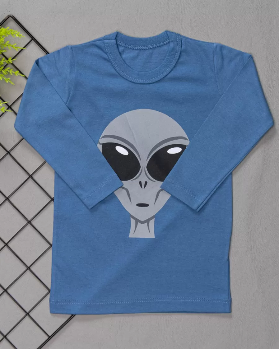 Camiseta Longa Infantil Estampada Azul Denim Et