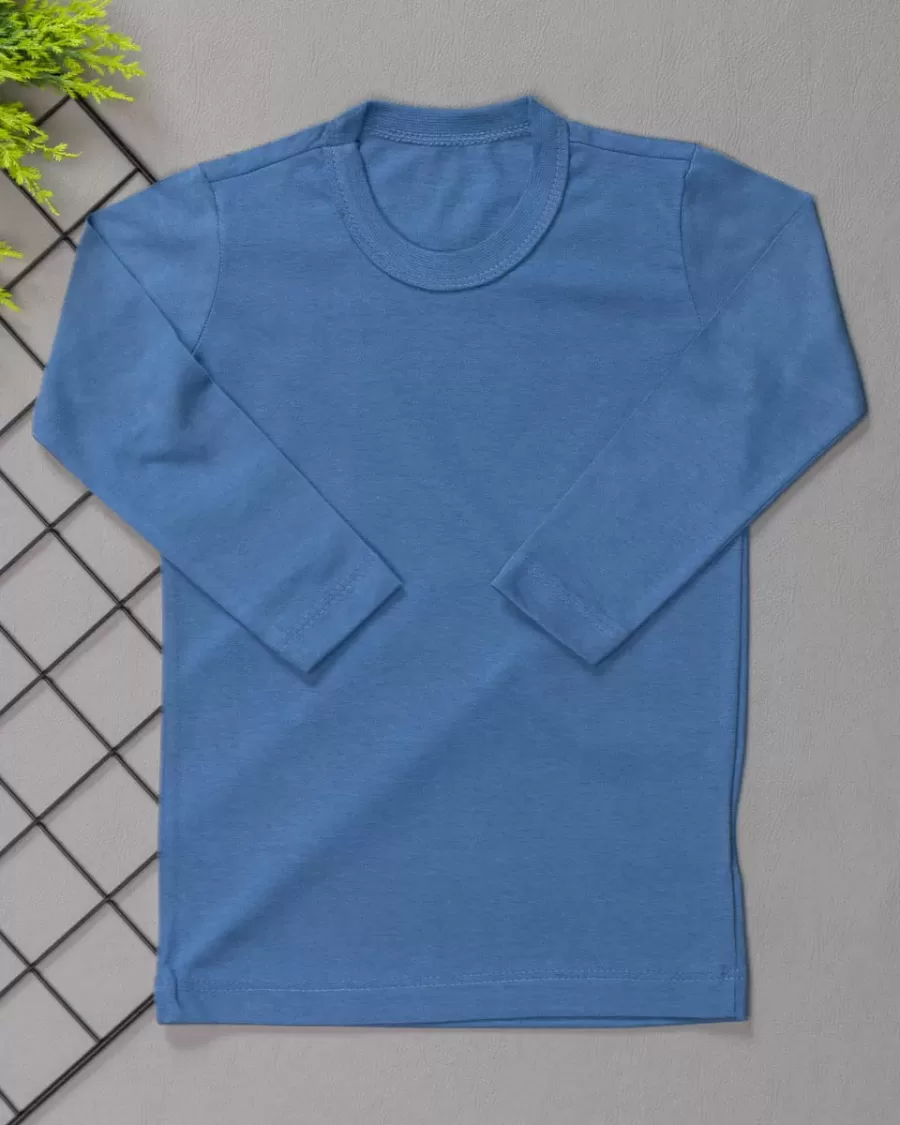 Nossa Camiseta Infantil Manga Longa Tradicional Azul Denim Lisa é produzida em Malha de camiseta 100% algodão. Uma peça macia e confortável. Ideal para todas as ocasiões, uma peça chave no guarda roupa. Gola feita em ribana. Praticidade para o dia a dia da mamãe. Não contém elastano na sua composição. Além dessa cor temos vários outras em nosso site.