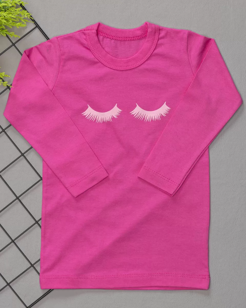 Camiseta Longa Infantil Estampada Pink Cílios