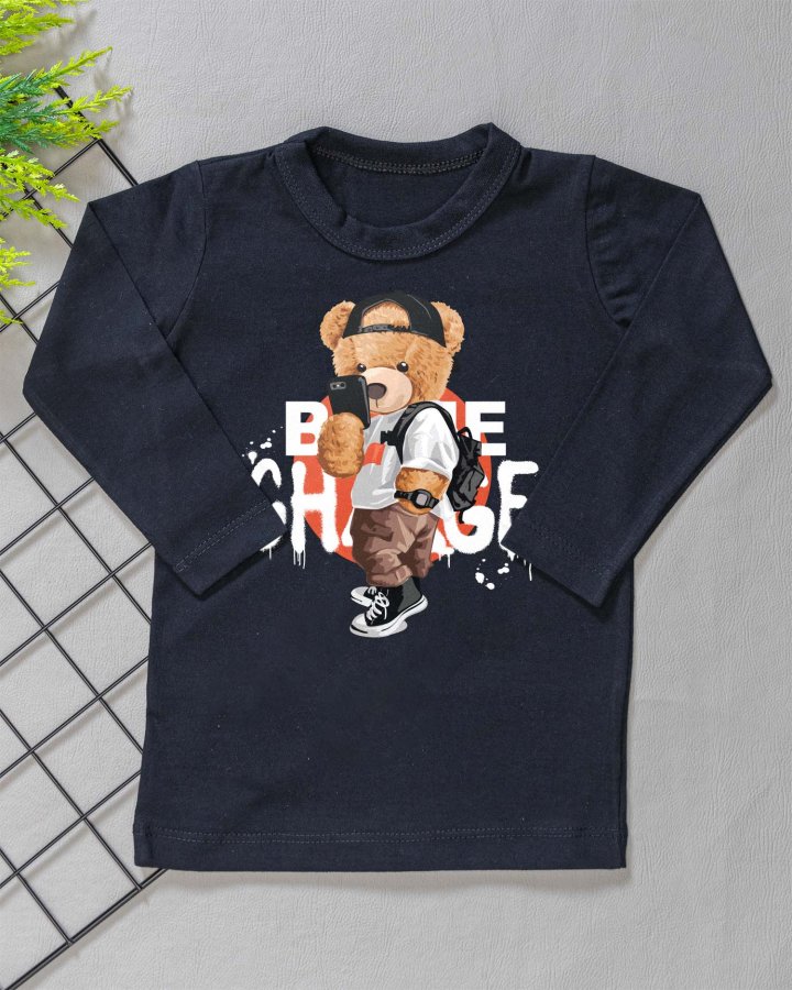 Camiseta Longa Infantil Estampada Preto Self