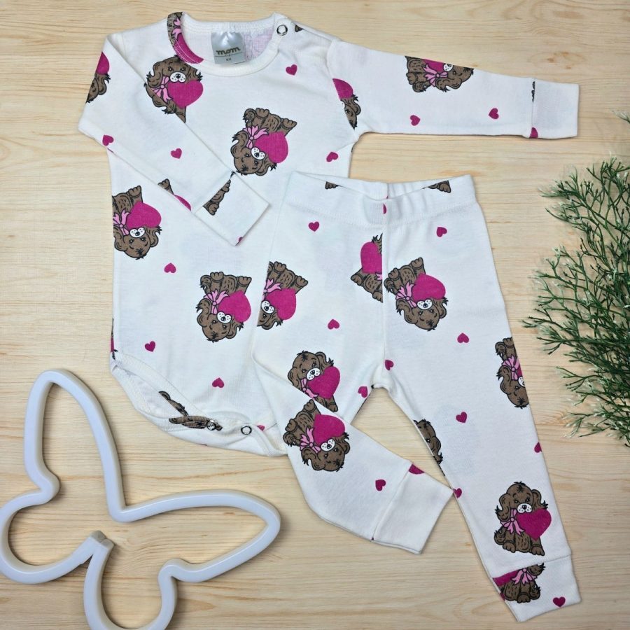 Conjunto Bebê Menina Pijama Pagão Algodão Premium-Off Cachorro Love