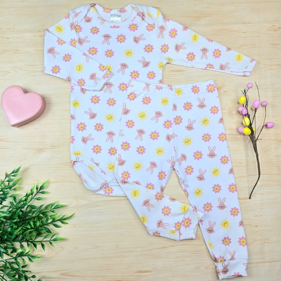 Conjunto Bebê Menina Pijama Pagão Branco- Florzinha com Sol