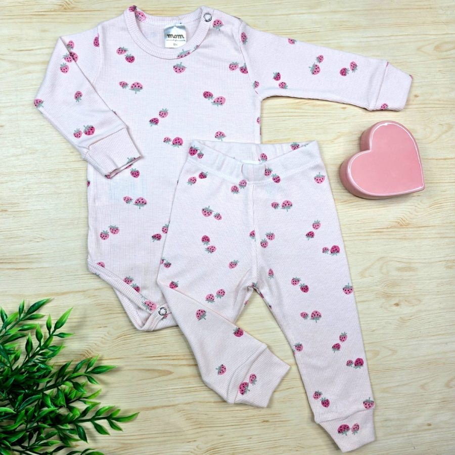 Conjunto Bebê Menina Pijama Pagão Ribana Premium-Rosa Moranguinhos