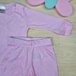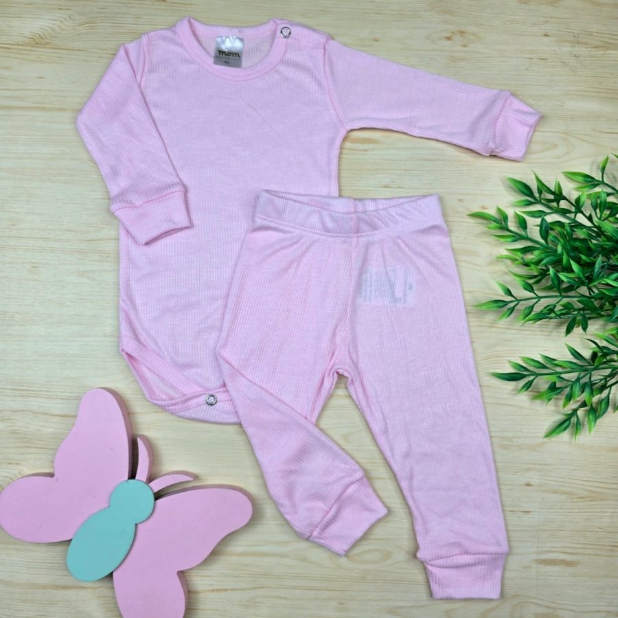 Conjunto Bebê Menina Pijama Pagão Suede Canelado-Rosa Liso
