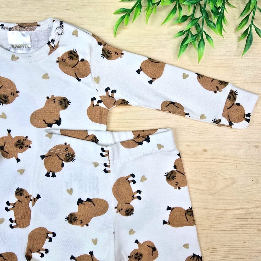Conjunto Bebê Menino Pijama Pagão Algodão Premium-Off Capivara