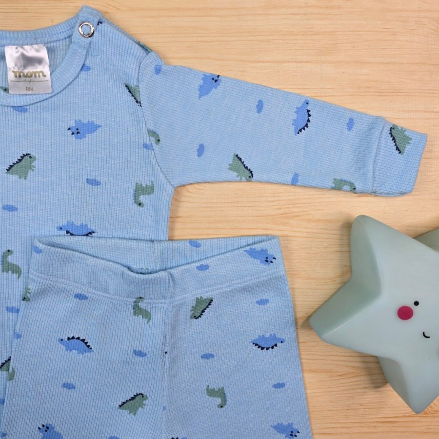 Conjunto Bebê Menino Pijama Pagão Ribana Premium-Azul Dino