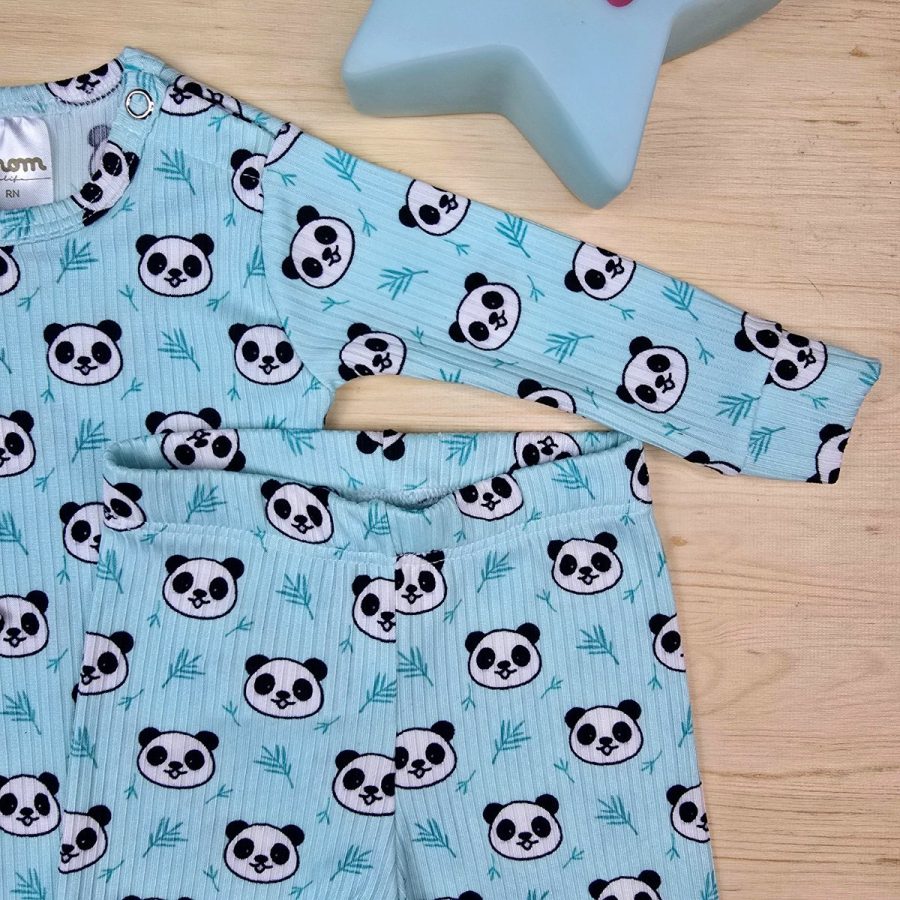 Conjunto Bebê Menino Pijama Pagão Suede Canelado-Azul Panda