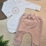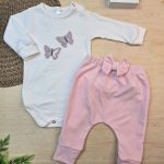 Conjunto acompanha um Body  manga longa em Algodão Egípcio, bordado super fofinho deixando a peça ainda mais delicada, e uma calça de Plush quentinha com toque leve e macio.