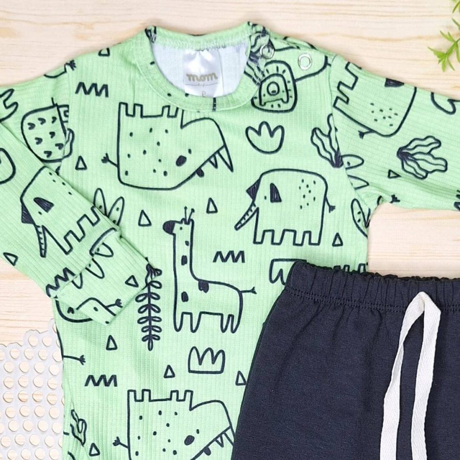 Conjunto Body Canelado e Calça Molecotton estampado Safari, com calça saruel e cordão para dar um estilo.