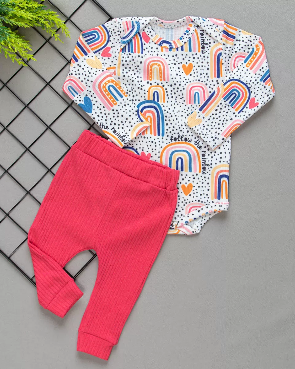 Conjunto Canelado para Bebê Arco Irís Estampado