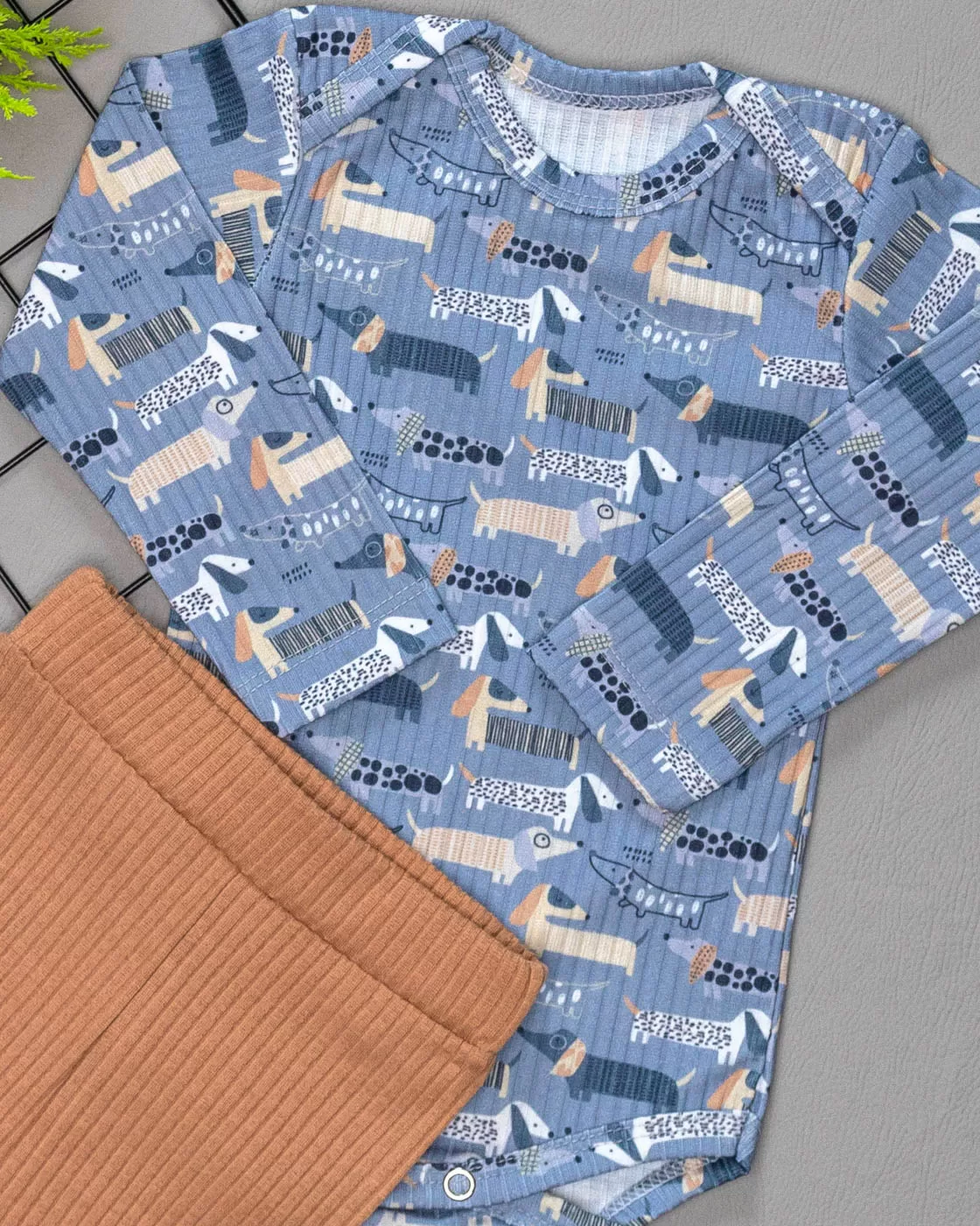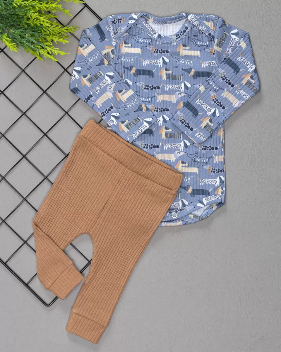 Nosso Conjunto Canelado para Bebê Dog é composto por um Body Manga Longa para Bebê Estampado com gola em envelope que facilita vestir na cabeça do bebê e botão de Pressão na entre perna e uma Calça Saruel Canelada Estampada com cós de elástico e punho. Resulta em uma peça super macia e confortável, é ideal para todas as ocasiões, uma peça chave no guarda roupa do seu baby trazendo praticidade para o dia a dia da mamãe.