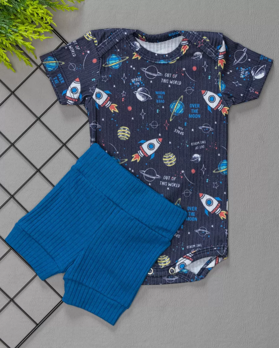 Nosso Conjunto Canelado para Bebê Astronauta é composto por um Body Manga Curta para Bebê Estampado com gola em envelope que facilita vestir na cabeça do bebê e botão de Pressão na entre perna e uma Shorts Canelado Liso com cós de elástico e punho. Resulta em uma peça super macia e confortável, é ideal para todas as ocasiões, uma peça chave no guarda roupa do seu baby trazendo praticidade para o dia a dia da mamãe.