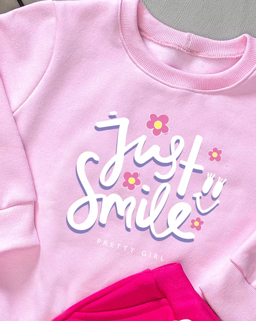 Conjunto de Moletom com Gola Infantil Rosa Just Smile