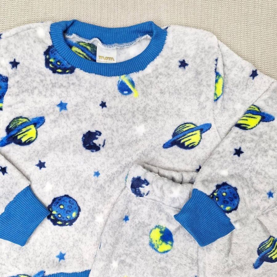 Nosso conjunto fleece Cinza Planeta é super quentinho, confortável e macio, além de serem uma fofura que vai deixar seu principe ainda mais estiloso.