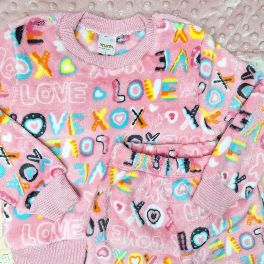 Conjunto Fleece Pijama Blusa e Calça Rosa Love