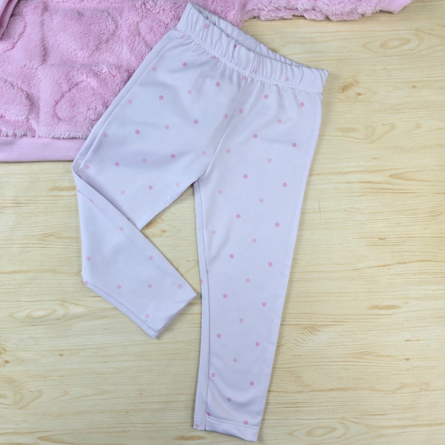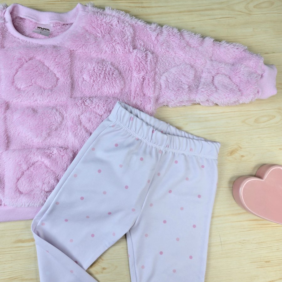 Conjunto Infantil Menina Casaco Sherpa Relevo e Legging Térmica- Rosa Coração e Branco Poá