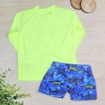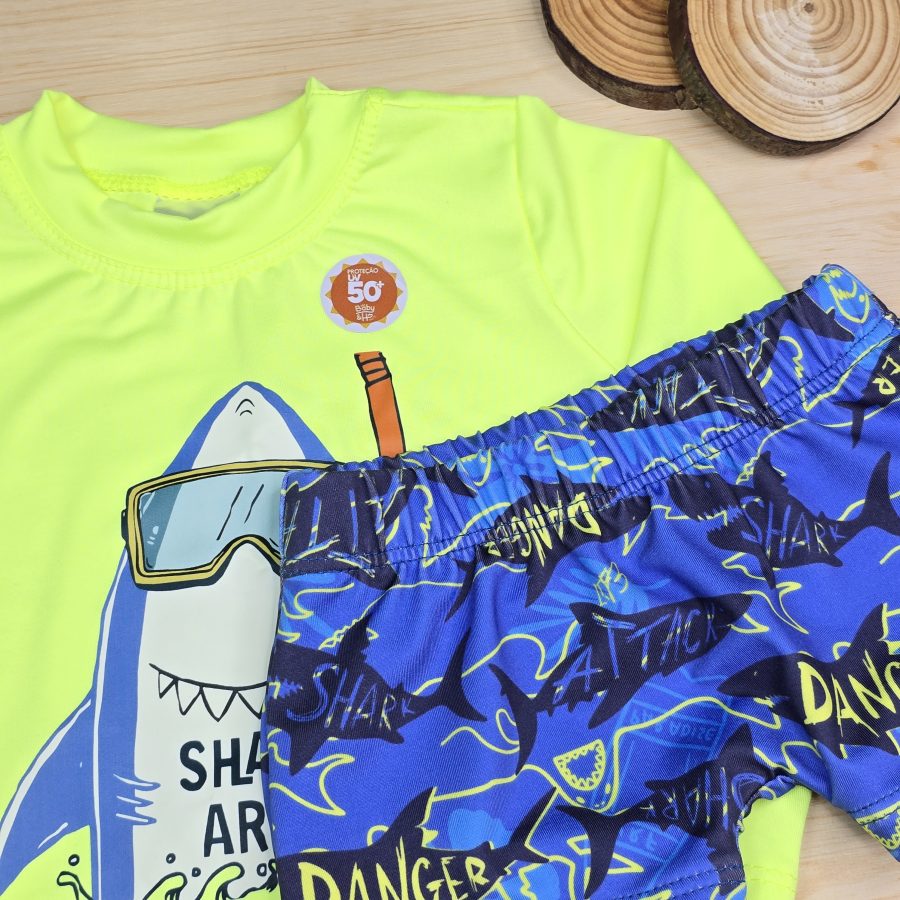 Conforto e proteção em cada detalhe. Nosso conjunto infantil com proteção UV 50+ é confeccionado em tecido de alta qualidade, com toque macio e secagem rápida. Garante proteção total contra os raios solares , ideal para dias de praia ou piscina com segurança e estilo. Com modelagem confortável, o conjunto oferece liberdade de movimento e um caimento impecável para que as crianças brinquem sem preocupações.