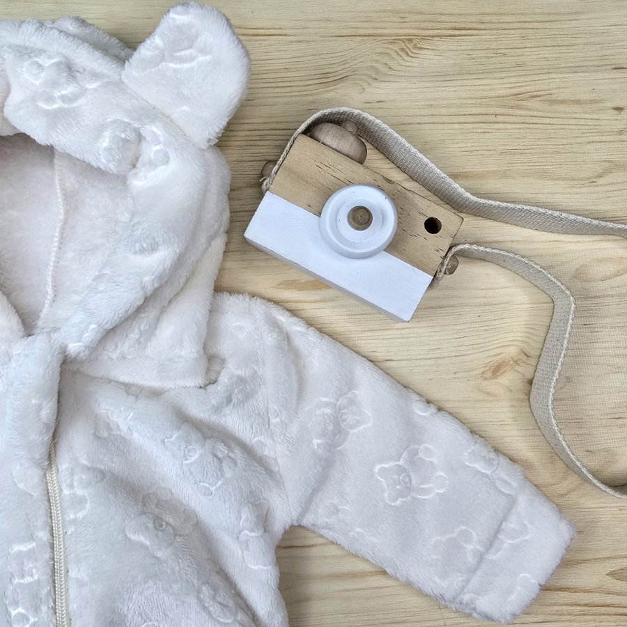 Conjunto Bebê Capuz Orelhinha Fleece Ursinho-Off, vai garantir que seu bebê fique confortável e aquecido no inverno.