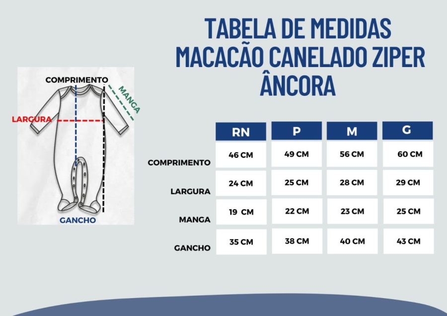 Macacão longo de zíper com proteção interna e externa para não machucar e facilitar na hora de vestir.
