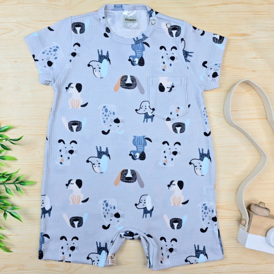 Macacão Curto Para Bebê Menino Modelo Manga Curta com Tecido Canelado – Azul Dog | Baby&H