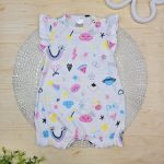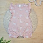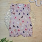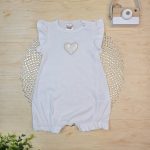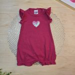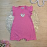 Macacão Curto Babado Canelado Rosa Pink – Bordado Coração