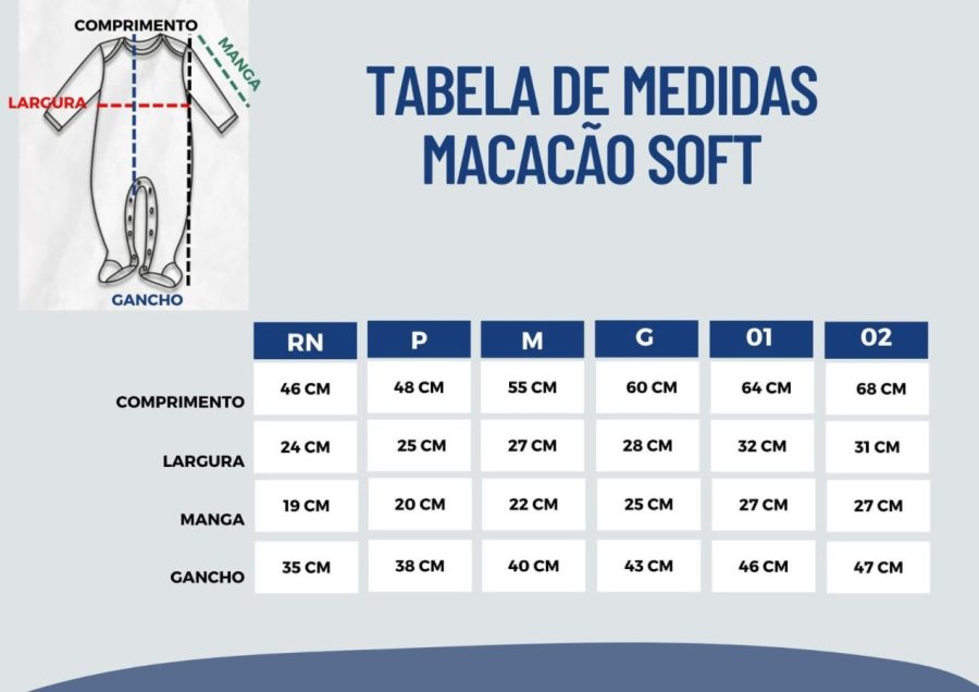 Com punhos nos braços e pernas para encaixar melhor no corpo do bebê.