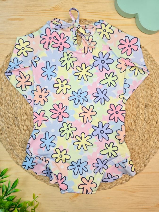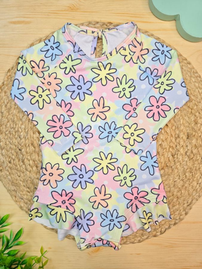 Maiô Praia Proteção UV 50+ Florzinhas