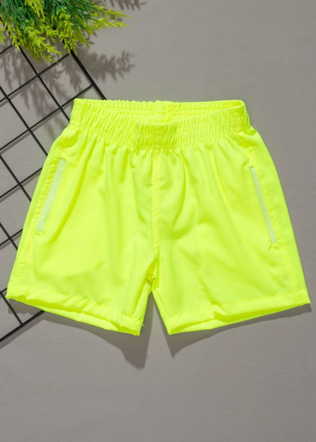 Short Infantil Tactel com Bolso Amarelo Neon