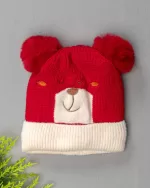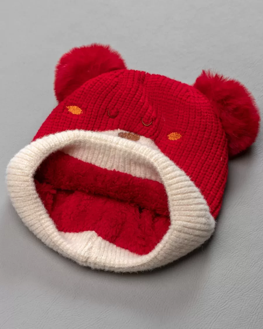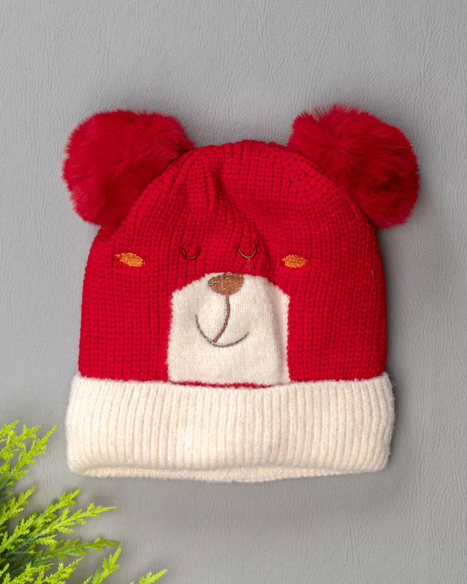 Touca Infantil Peluciada com Pompom de Urso Vermelho