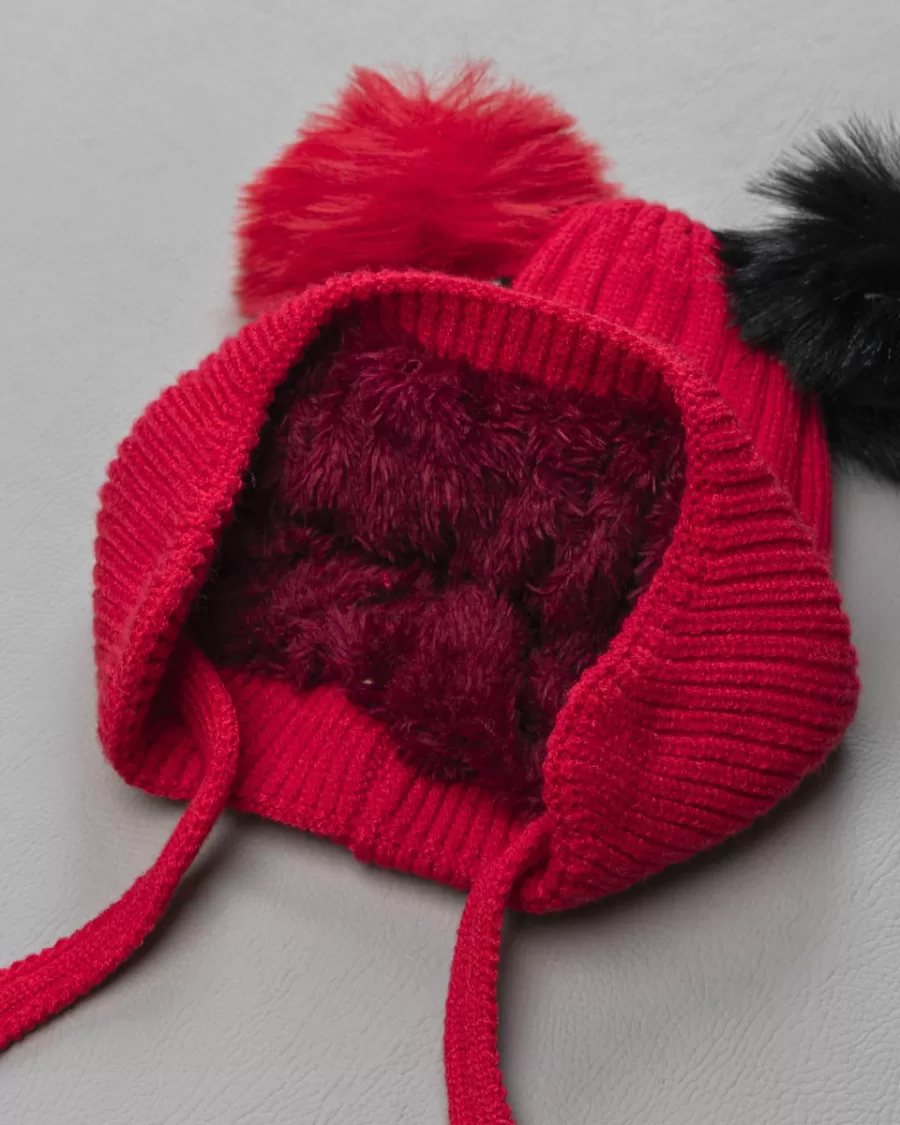 Touca Infantil Peluciada com Pompom ”Hey” Vermelho